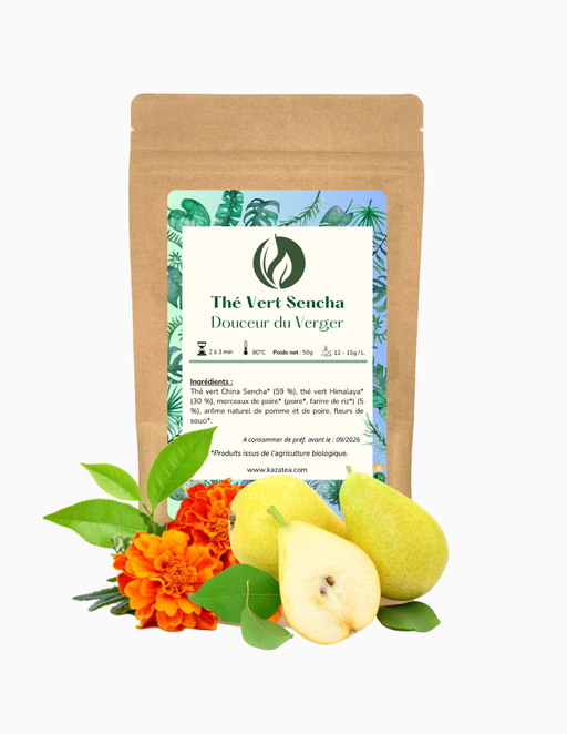 Prix d'origine 5,20 € - Prix d'origine 10,25 €Prix d'origine 5,20 €5,20 € - 10,25 €5,20 € - 10,25 €Prix actuel 5,20 €| /En stockThé Vert Douceur du Verger à la Poire est un thé vert fruité et délicatement parfumé, pensé pour les amateurs de saveurs fines et équilibrées. Sa b...