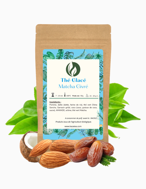 Thé glacé Matcha givré est une création gourmande et raffinée qui marie douceur et caractère. La pomme et la datte apportent une sucrosité naturell...